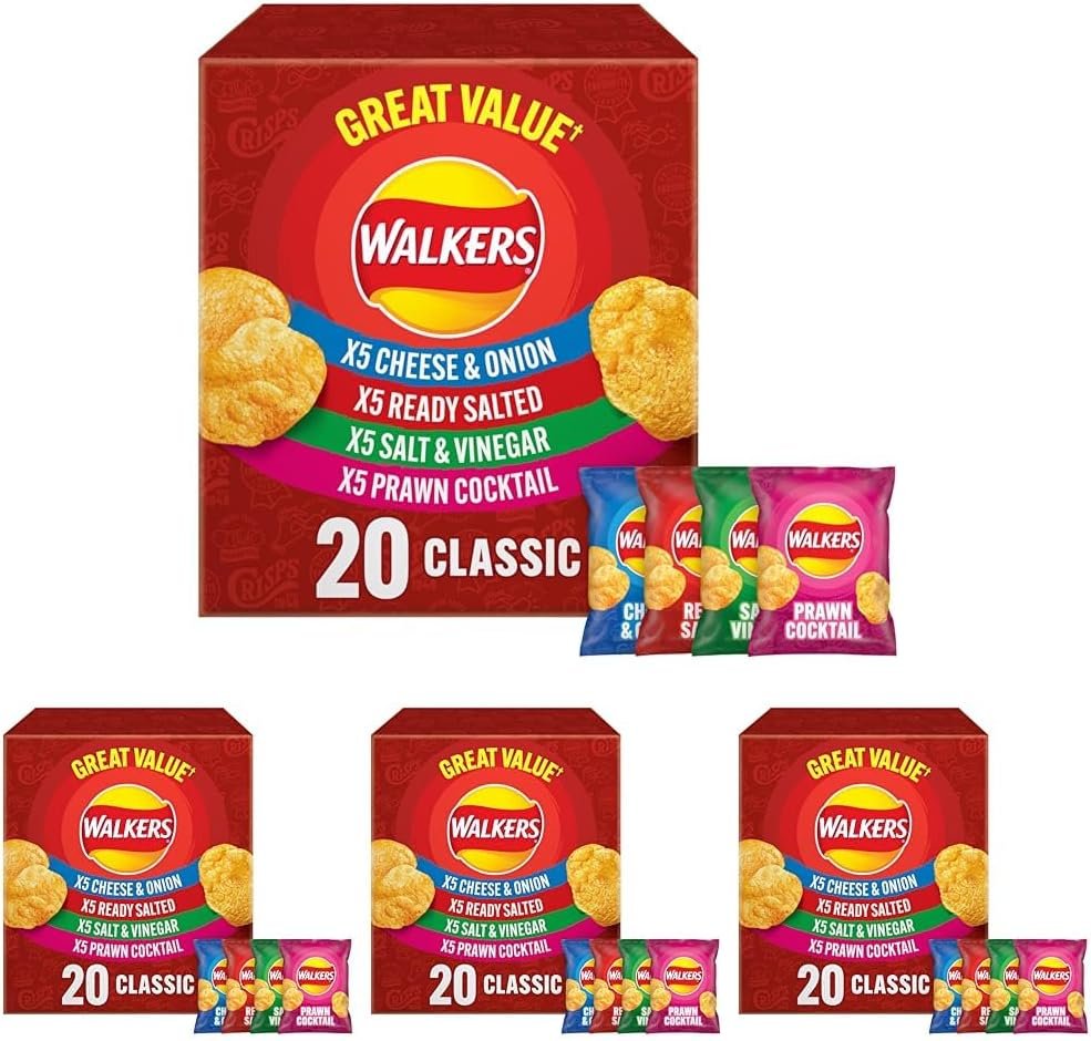 5 x Cheese & Onion Flavour Potato Crisps. Ingredients: Potatoes, Vegetable Oils (Sunflower, Rapeseed, in varying proportions), Cheese & Onion Seasoning [Dried Onion, Salt, Dried MILK Whey, Lactose (from MILK), Sugar, Flavouring (contains MILK), Cheese Powder (from MILK), Dried Yeast, Dried Garlic, Acids (Citric Acid, Malic Acid), Colours (Annatto Bixin, Paprika Extract)]. ALERGY ADVICE: see highlighted ingredients. May contain: WHEAT, GLUTEN, BARLEY, SOYA, CELERY, MUSTARRD. 5 x Ready Salted Potato Crisps. Ingredients: Potatoes, Vegetable Oils (Sunflower, Rapeseed, in varying proportions), Salt. May contain: MILK, WHEAT, GLUTEN, SOYA, CELERY, MUSTARD. 5 x Salt & Vinegar Flavour Potato Crisps. Ingredients: Potatoes, Vegetable Oil (Sunflower, Rapeseed, in varying proportions), Salt and Vinegar Seasoning [Flavouring, Salt, Acids (Citric Acid, Malic Acid), Yeast Extract, Potassium Chloride, Antioxidant (Rosemary Extract)]. May contain: MILK, WHEAT, GLUTEN, BARLEY, SOYA, CELERY, MUSTARD.